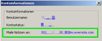 Jedes Evernote Konto hat eine Mailadresse, siehe Kontoinformationen.