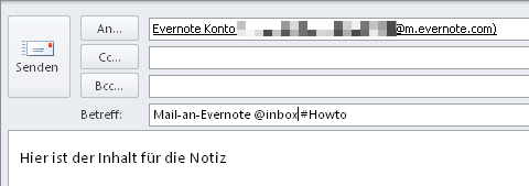Mails an @Evernote schicken - Die Syntax