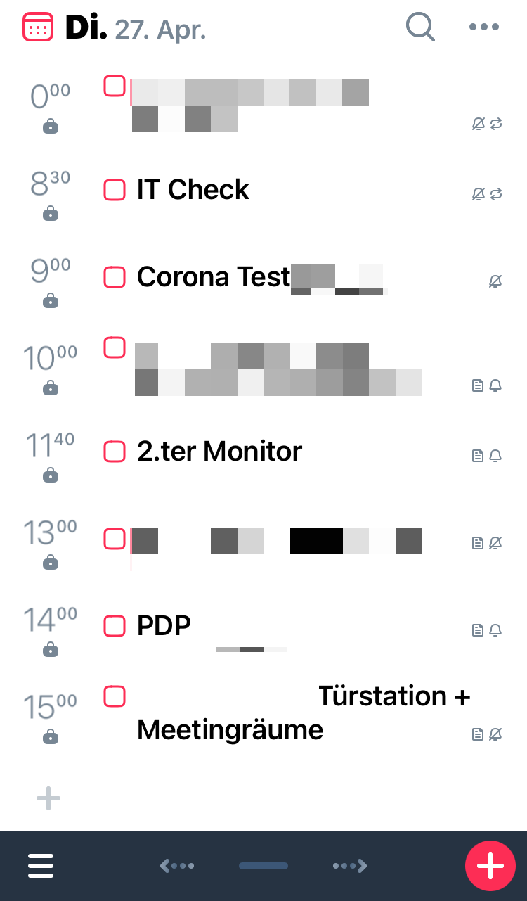 - Ich kann Aufgaben zeitlich zwischen Termine legen und somit Aufgaben ohne Termin in der Übersicht einplanen. Das geht bei Calendars 5 eben nicht. Bei der Pro Version sogar automatisch, wenn die Bearbeitungszeit gepflegt wird.