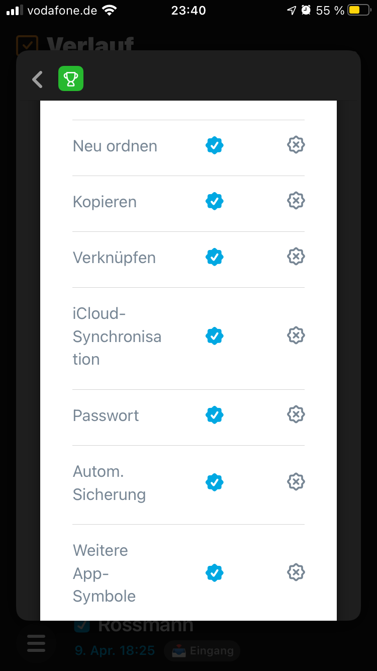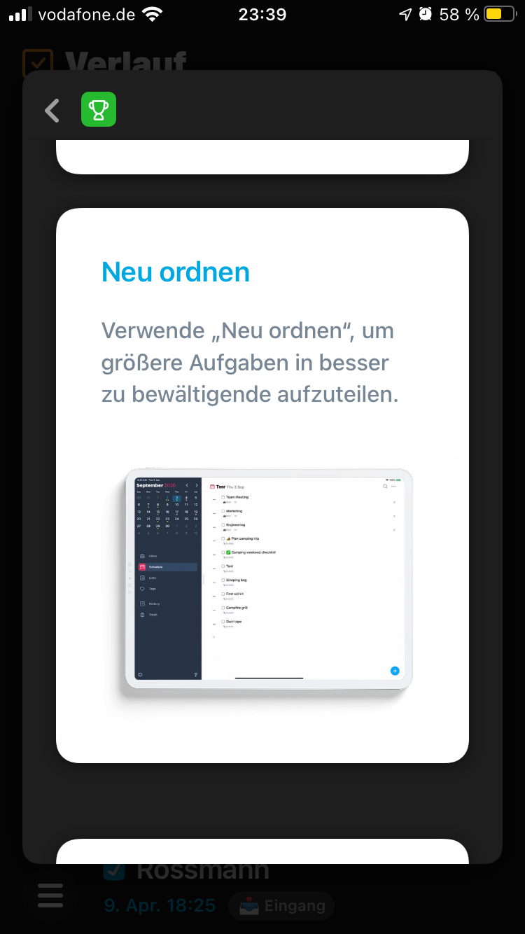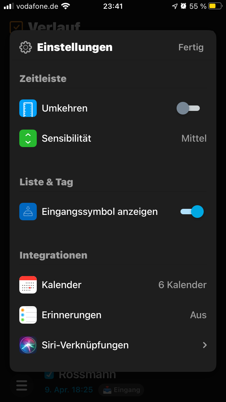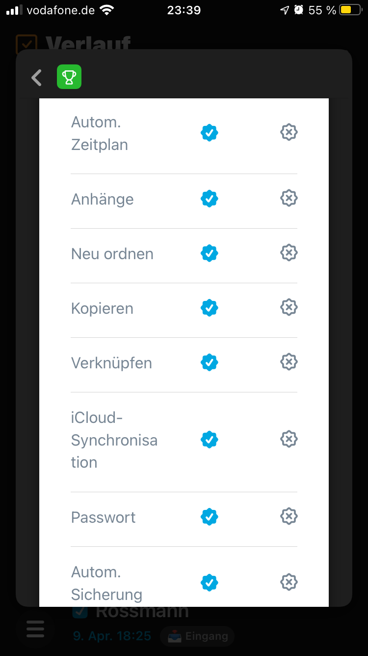 - Ich kann Aufgaben sowie Termine abhaken. Dann werden sie ausgeblendet und irritieren mich nicht weiter.