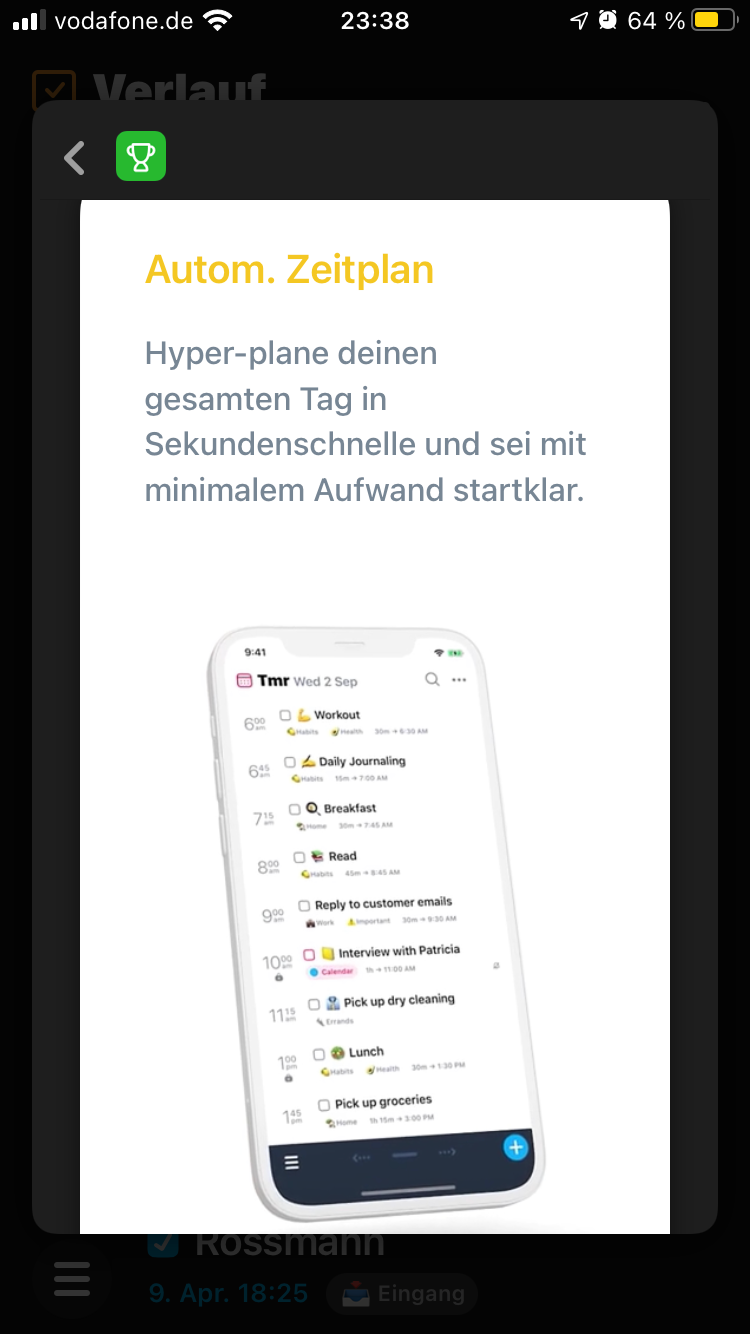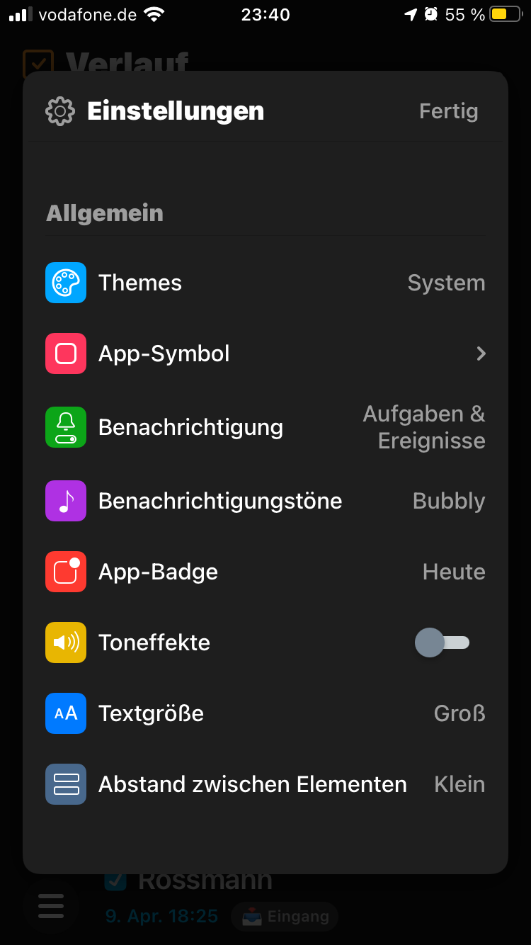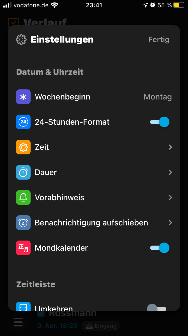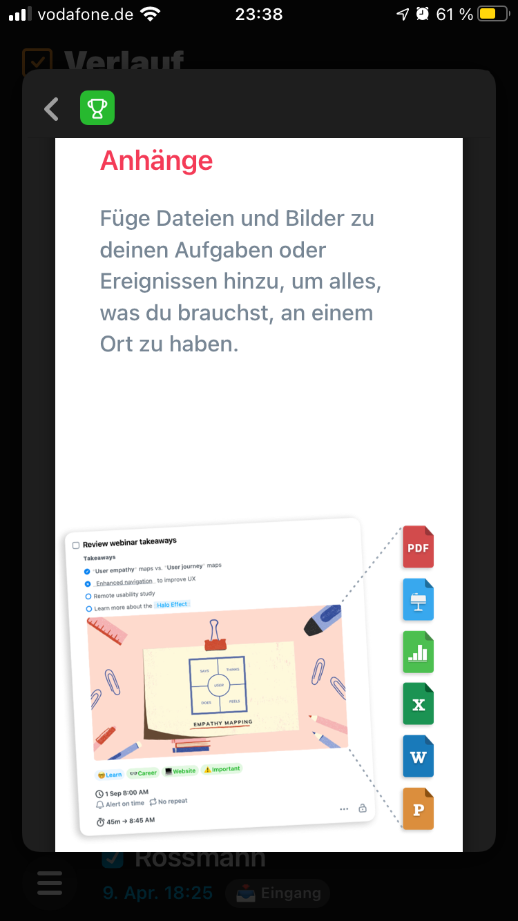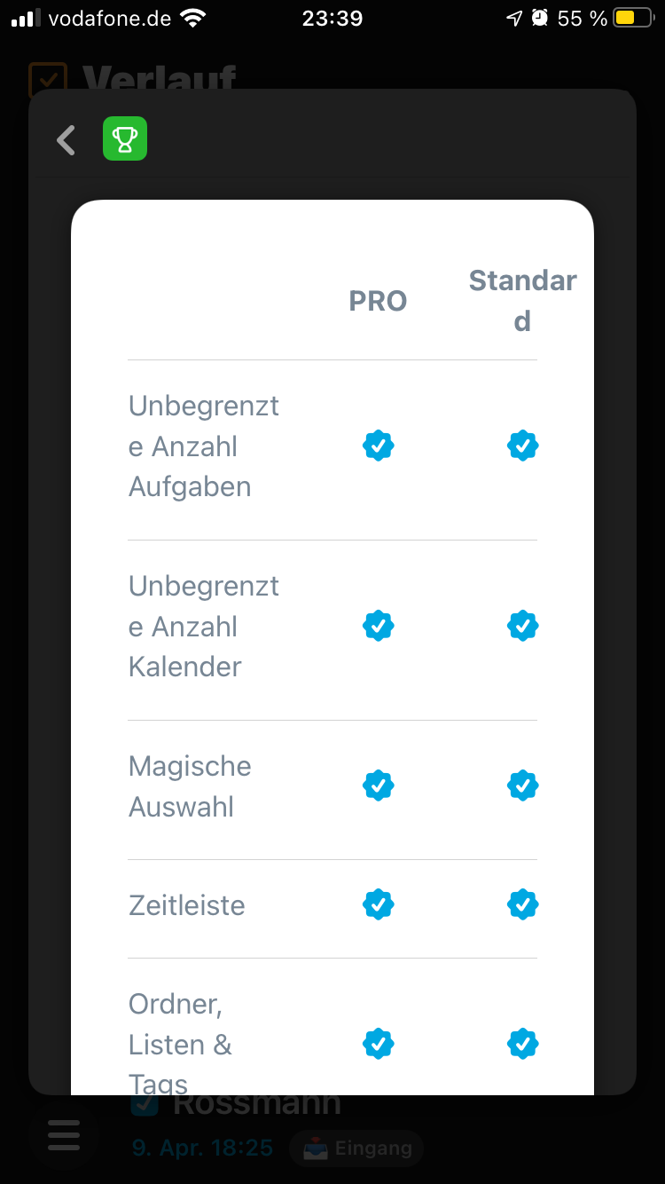 - Ich kann Aufgaben sowie Termine abhaken. Dann werden sie ausgeblendet und irritieren mich nicht weiter.