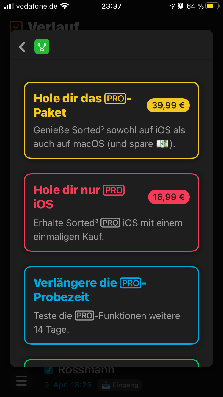 Bei all diesen Funktionen ist sorted³ kein Abo, sondern als iOS Version für einmalig 16,99 erhältlich. | ![]() |